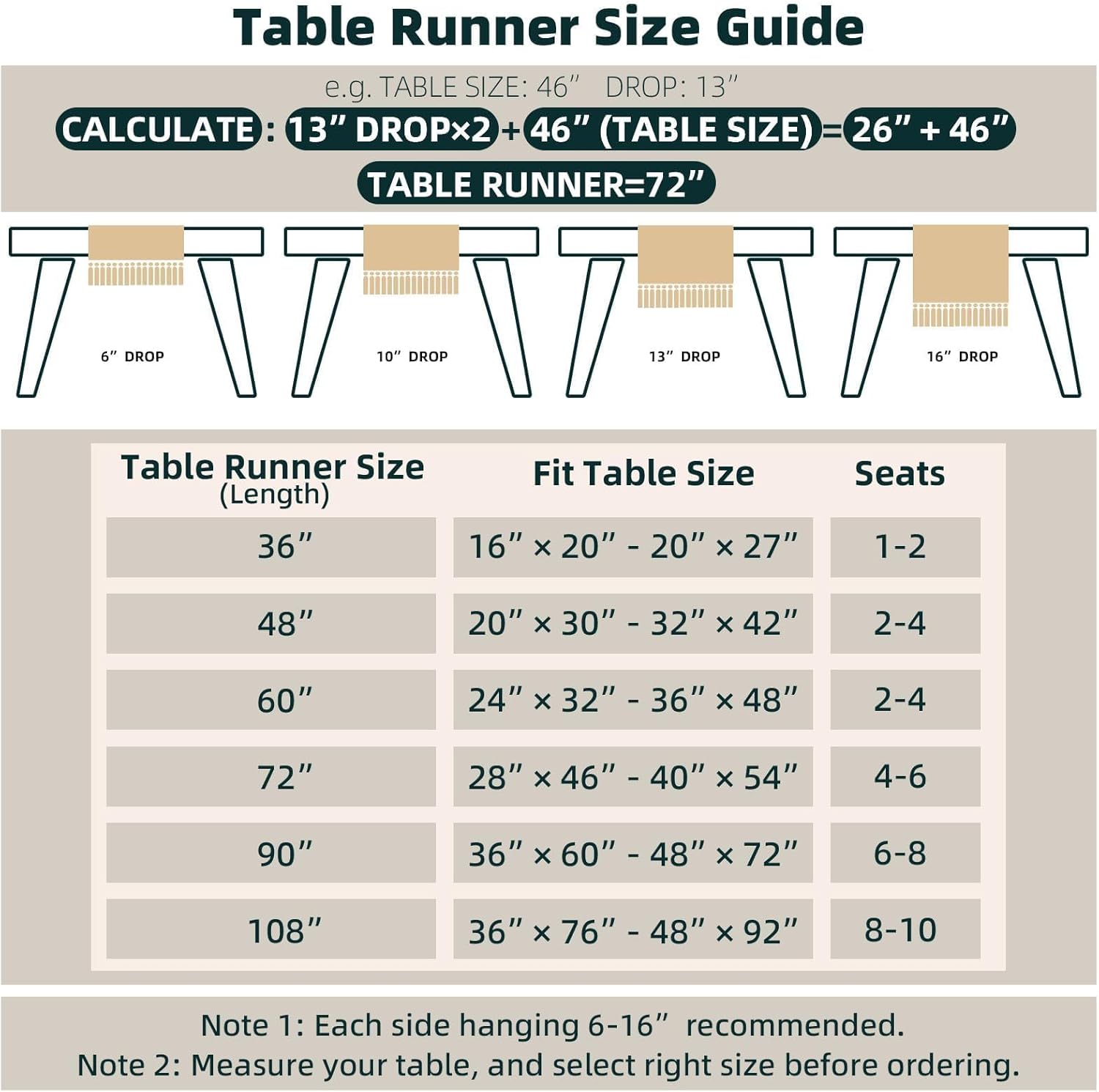 [Perfect 72 Inches Long] Our macrame table runner with tassels measures 12 x 72inch, fits a dining table that seats 4-8 people. It can give your tables a rustic and boho look. (Because it is folded in the bag, when you take it out, the table runner will have creases, which will affect your measurement. So, please make sure the table runner is placed neatly and flat before measuring)